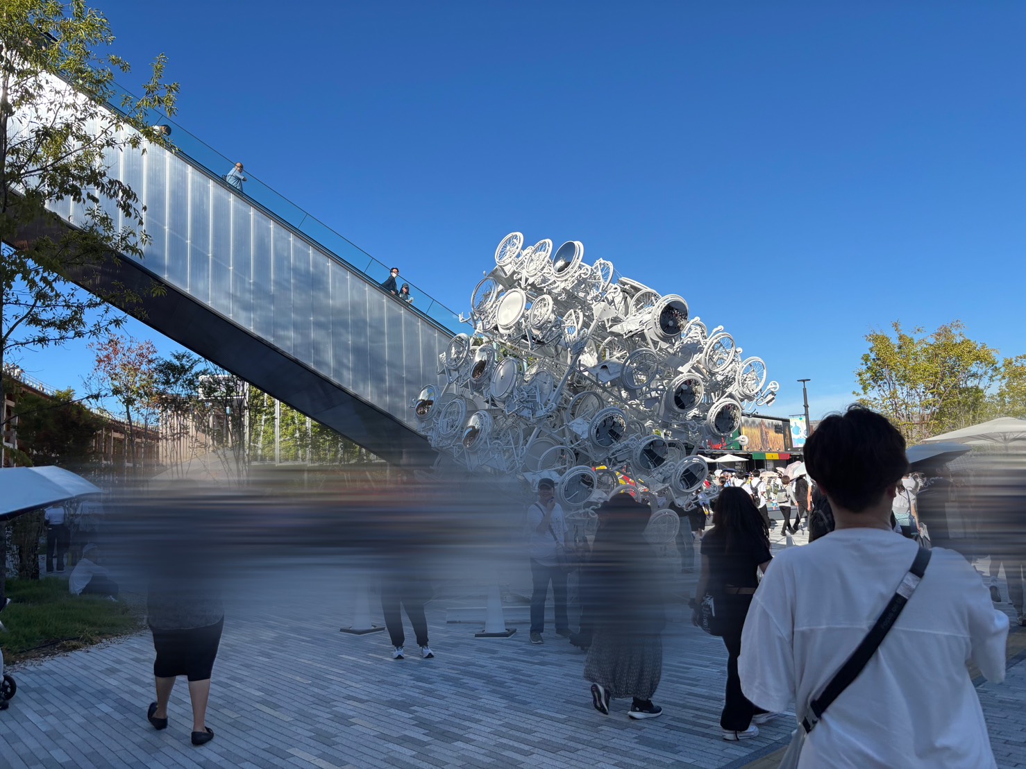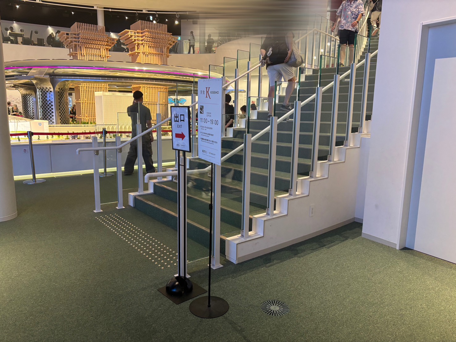 写真撮影を終えて解散した所で、大屋根のリングの下を反時計回りに進んでいきました。