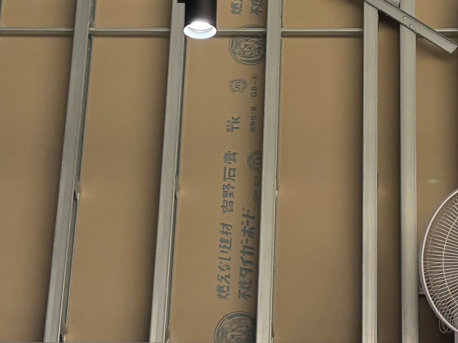 あえて両面貼らなかったのは工期短縮か、費用削減か、、なんにせよ不燃材同士だからこそできる仕上げですね。とても面白いです。