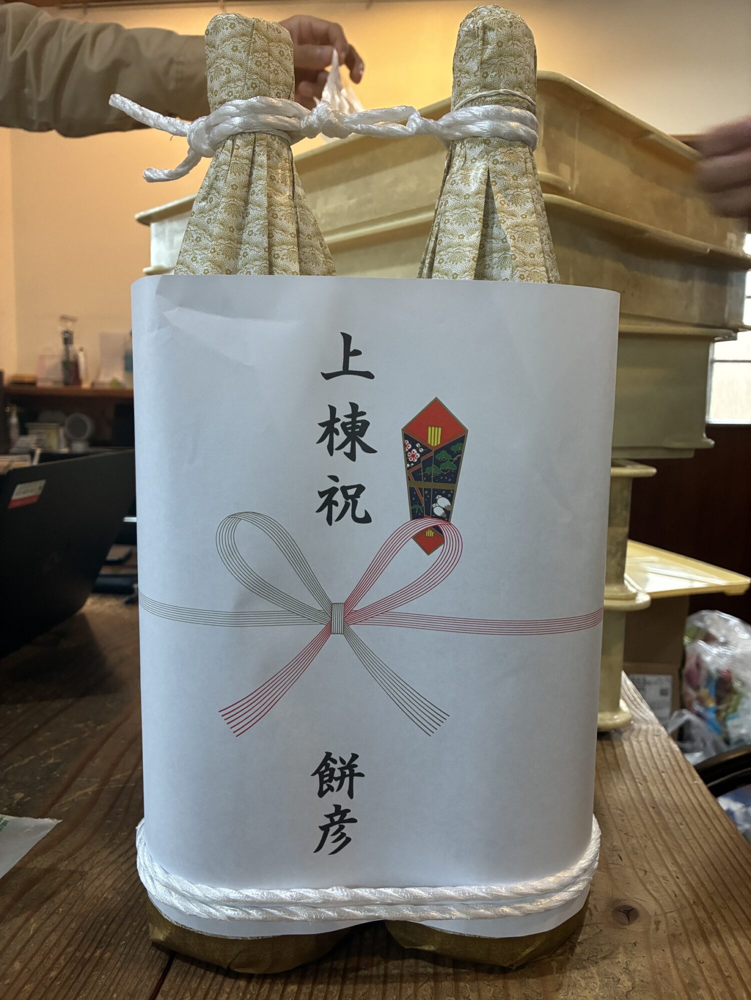 当日餅彦さんにお餅を取りに伺うと社長様よりお祝いを頂きました。